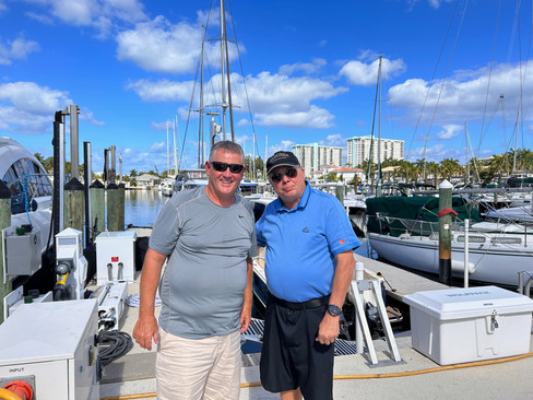 We had a hard time securing a marina; however, Loggerhead Marina made room for us. We were assigned to a T dock (also known as transient dock). Generally there is a 100+ ft boat assigned to the dock we were docked at. The owner of the slip / pier had his boat pulled out for repairs. We were able to dock stern to stern (w/ Breakaway), we barely fit!