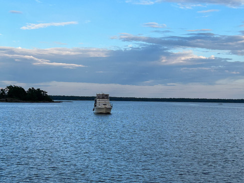 It's a long Canadian holiday weekend, so several boats were out. The bay was packed with many people taking advantage of the long weekend. We met a paddle boarder, Julia, who is moving to St. Louis to play ice hockey for a St. Louis college. We exchanged numbers and of course I invited her to our US Thanksgiving holiday and also told her if she needed anything to reach out! Additionally, met these guys who anchored out on a nearby sandbar. They invited us over for drinks and nice conversation.