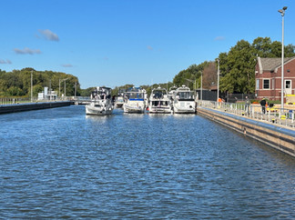 Saturday, September 7: Technically, the flotilla could now part ways; however, we 12 boats needed to work together to get through the first lock of the day. (working together prevents multiple calls to the lock master), Capel was kind enough to commit to lead us through the lock; however, as you can imagine, a few boats (about 4 - 5) left Heritage Marina before the larger group left and didn't communicate. No one was saying you had to communicate with the larger group, it's just courtesy. In the end, it actually worked out better for the larger group (us), we didn't get bunched up or feel crowded.