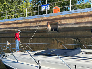 Arabella was named the "lead boat and captain" for Flotilla 1, their group decided to leave Hammond and hold up at Marine Services (another marina where loopers were staged and waiting on the locks) which was closer to the Joliet wall. By doing this, it cut down 2 hours of travel time to the lock and provide a better chance for early lockage.